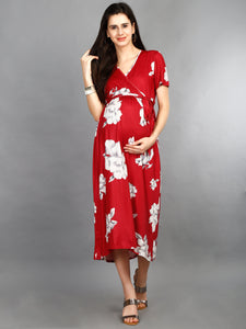 Floral Maternity Dress- Maroon