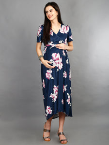 Floral Maternity Dress- Navy Blue