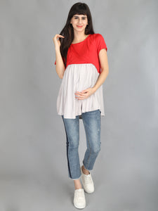 Red and White Stripes Casual Maternity and Nursing Wear Top