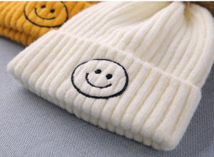Smiley Pom Pom Baby Winter Cap - Yellow