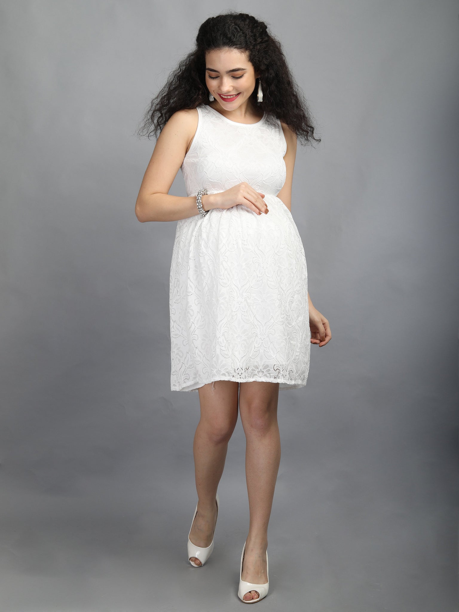 This splendid crystal white maternity dress is lightweight and perfect for a baby moon getaway. Enjoy the time off with your hubby before your bundle of joy arrives and keeps you both busy and sleepless! This dress is perfect for the summer, lightweight, and will perfectly flow over your curves.