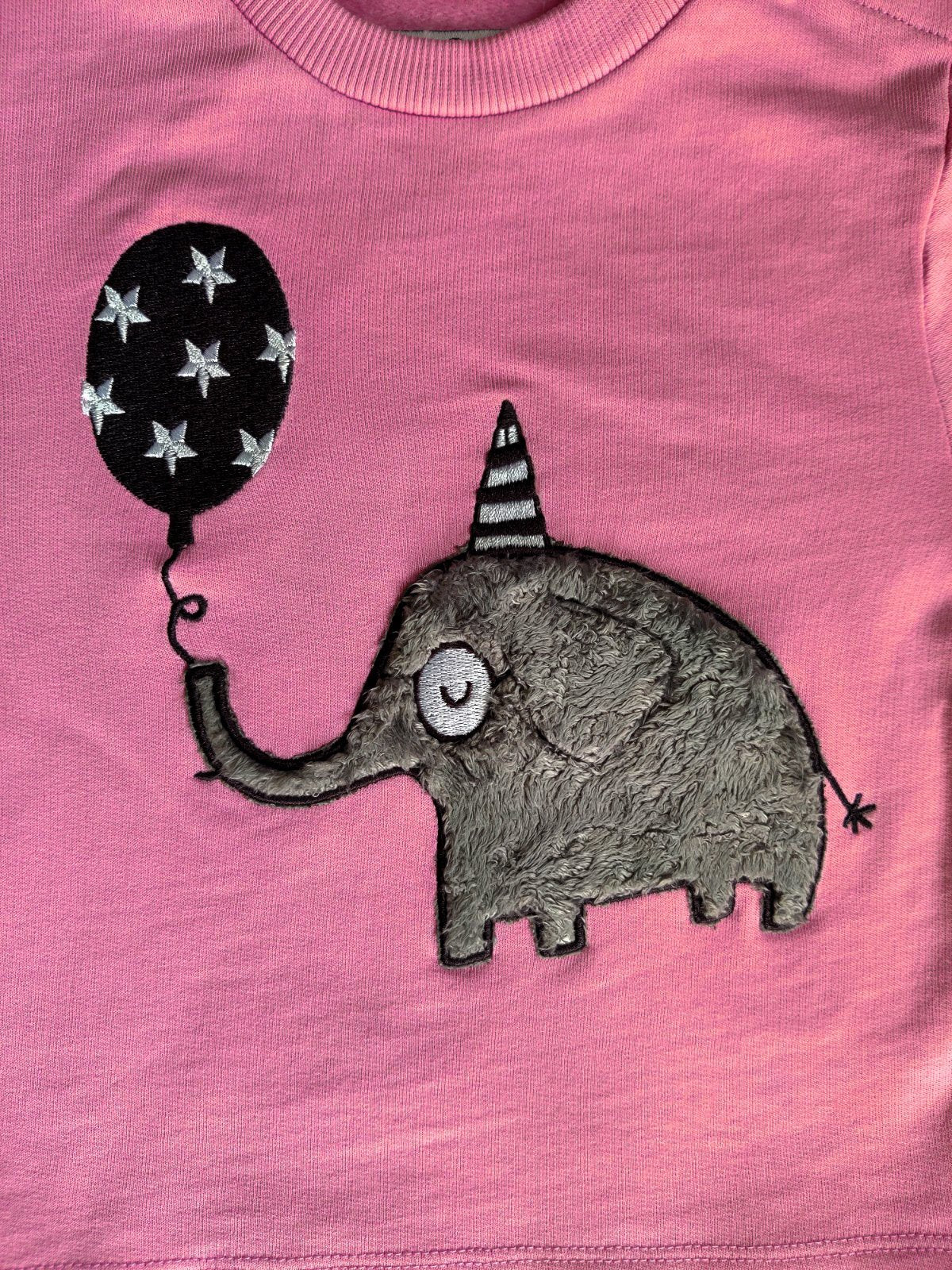 This Sweatshirt has a fluffy party elephant who loves balloons just like your little one!