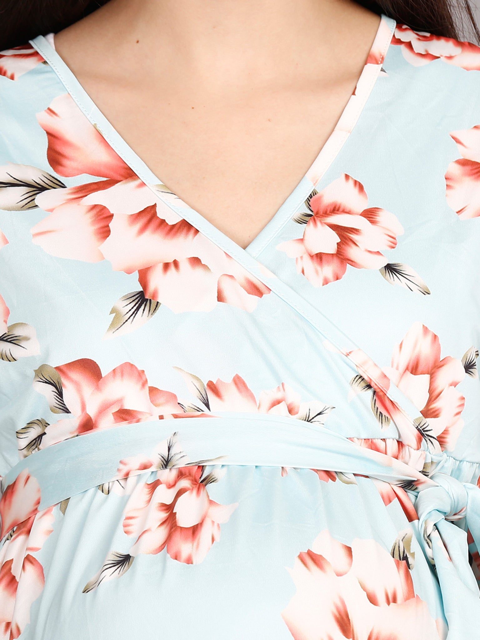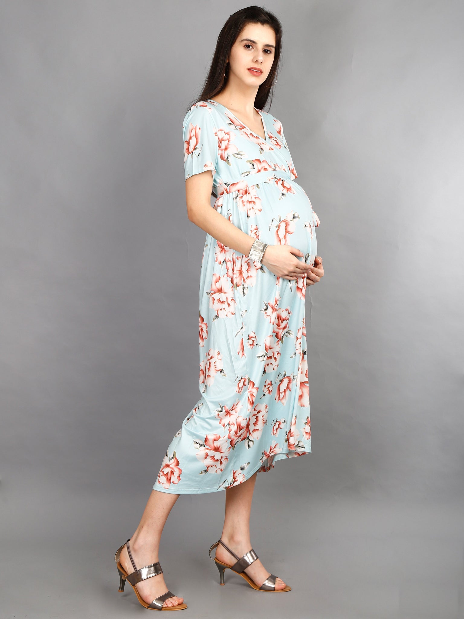 The Sash tie helps to provide support to belly and adds grace to the overall look. This dress will add to your radiance and pregnancy glow!