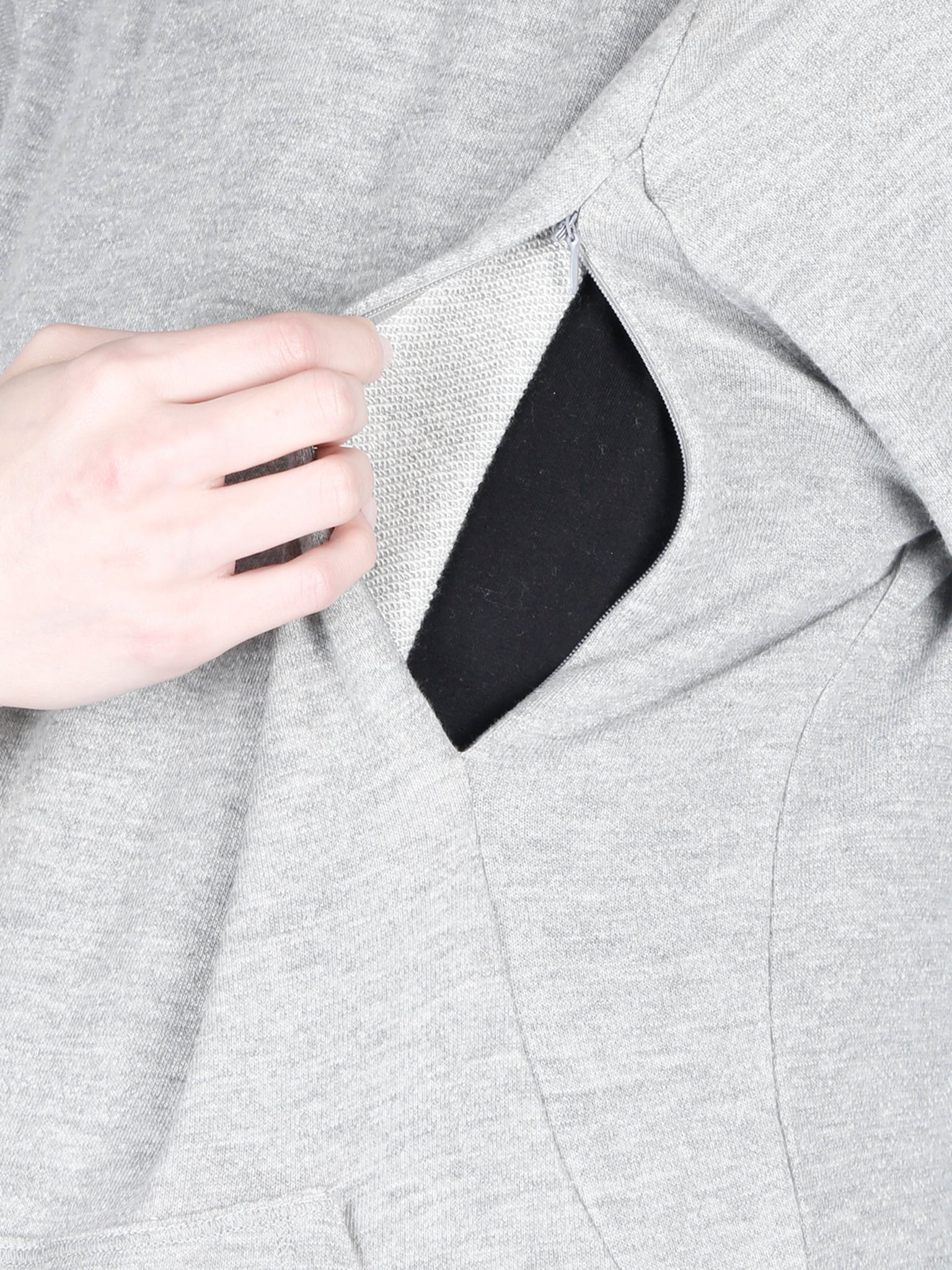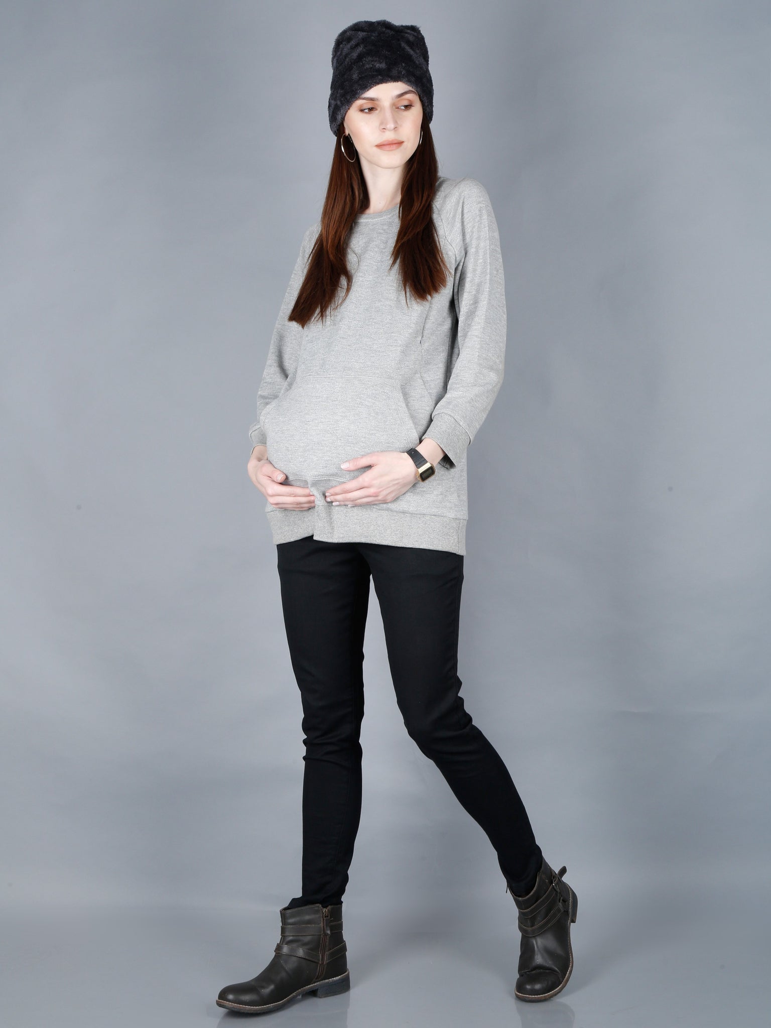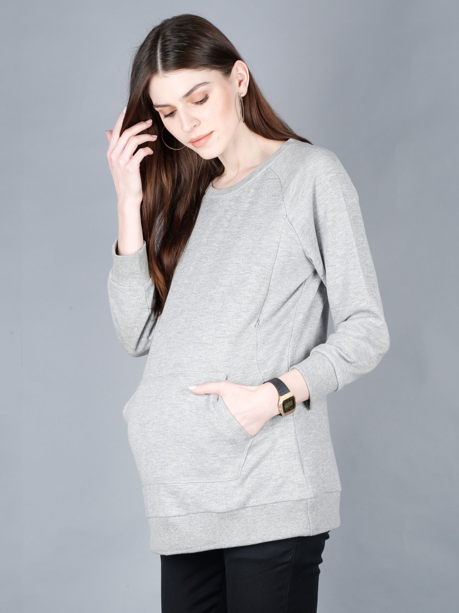 Introducing the comfy and cozy winter maternity nursing sweatshirt. These will keep you comfortable all day. This super comfortable cotton sweatshirt has a nursing zip to help you breastfeed during your casual outings and travel.