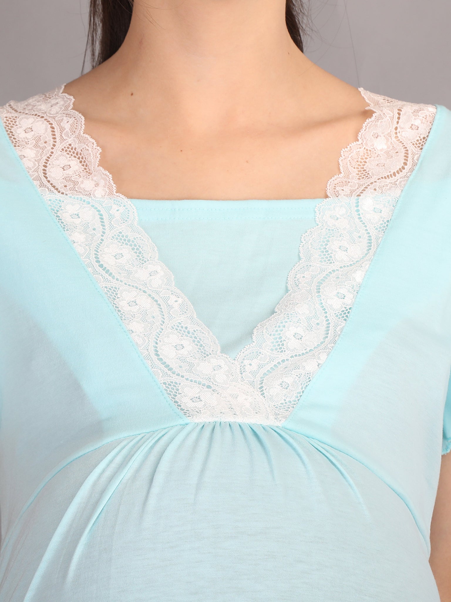 Lace Turquoise Maternity and Nursing Casual Dress - Neck View