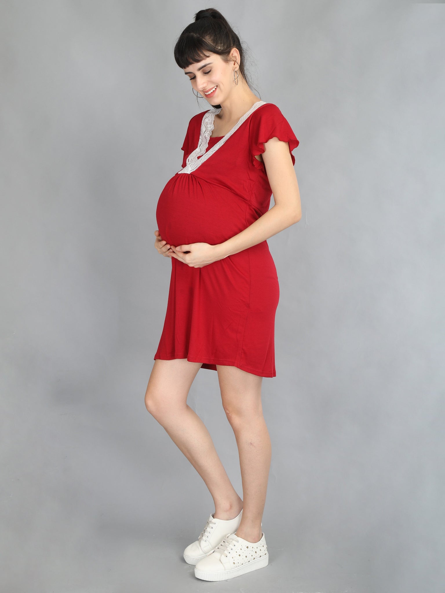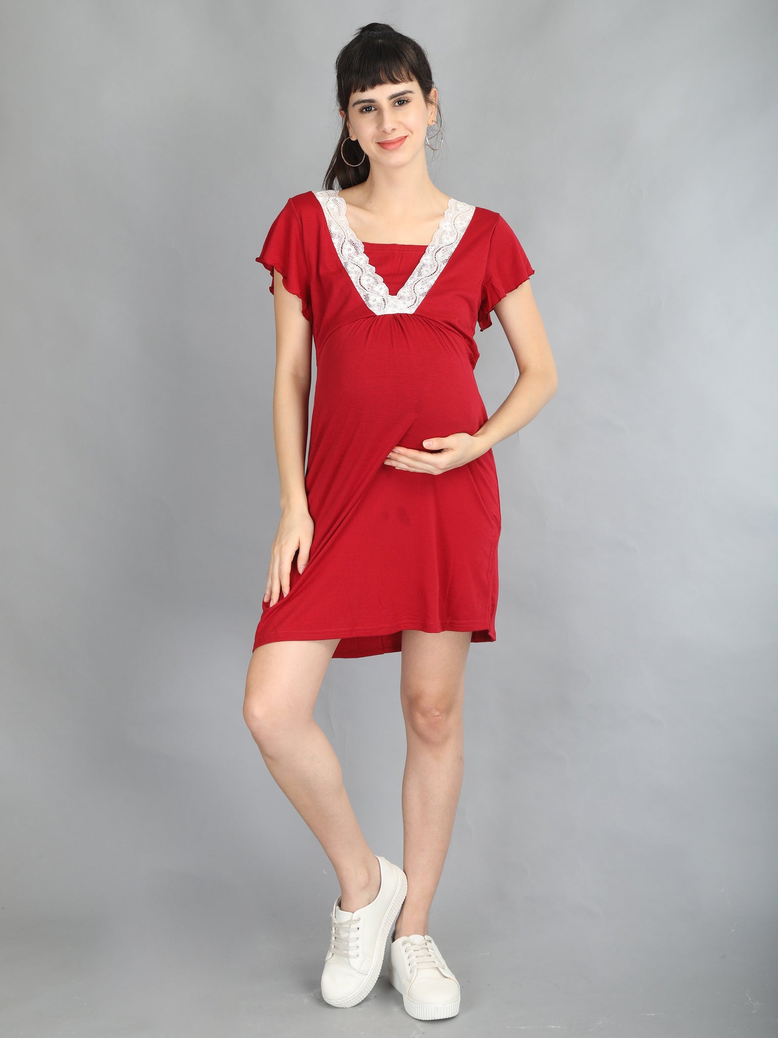 Be comfy in these casual dresses at home as you juggle your way through motherhood. These jersey cotton dresses with v neck lace will keep you comfortable during both pregnancy and nursing period.