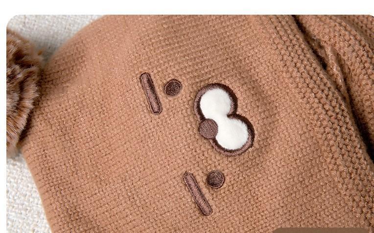 Pom Pom Baby Winter Cap With Muffler - Brown
