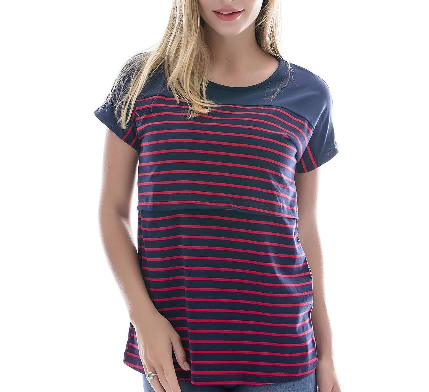 Navy Blue and Red Stripes Casual Maternity and Nursing Wear Top