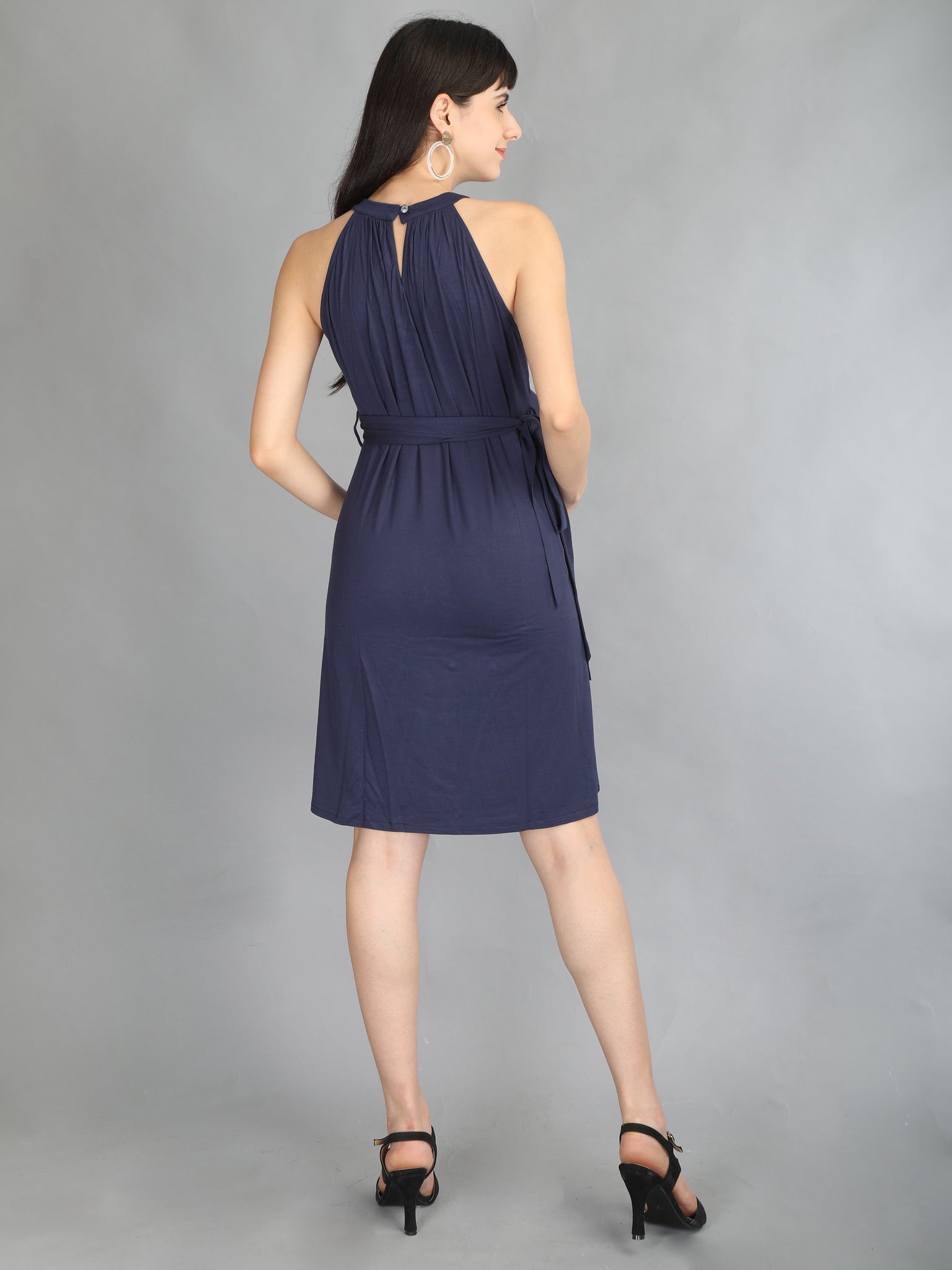 This navy blue halter neck maternity dress is comfortable and perfect for office wear or a vacation. This dress can be worn to office or enjoy some time off with your hubby before your bundle of joy arrives. This dress will perfectly flow over your curves.