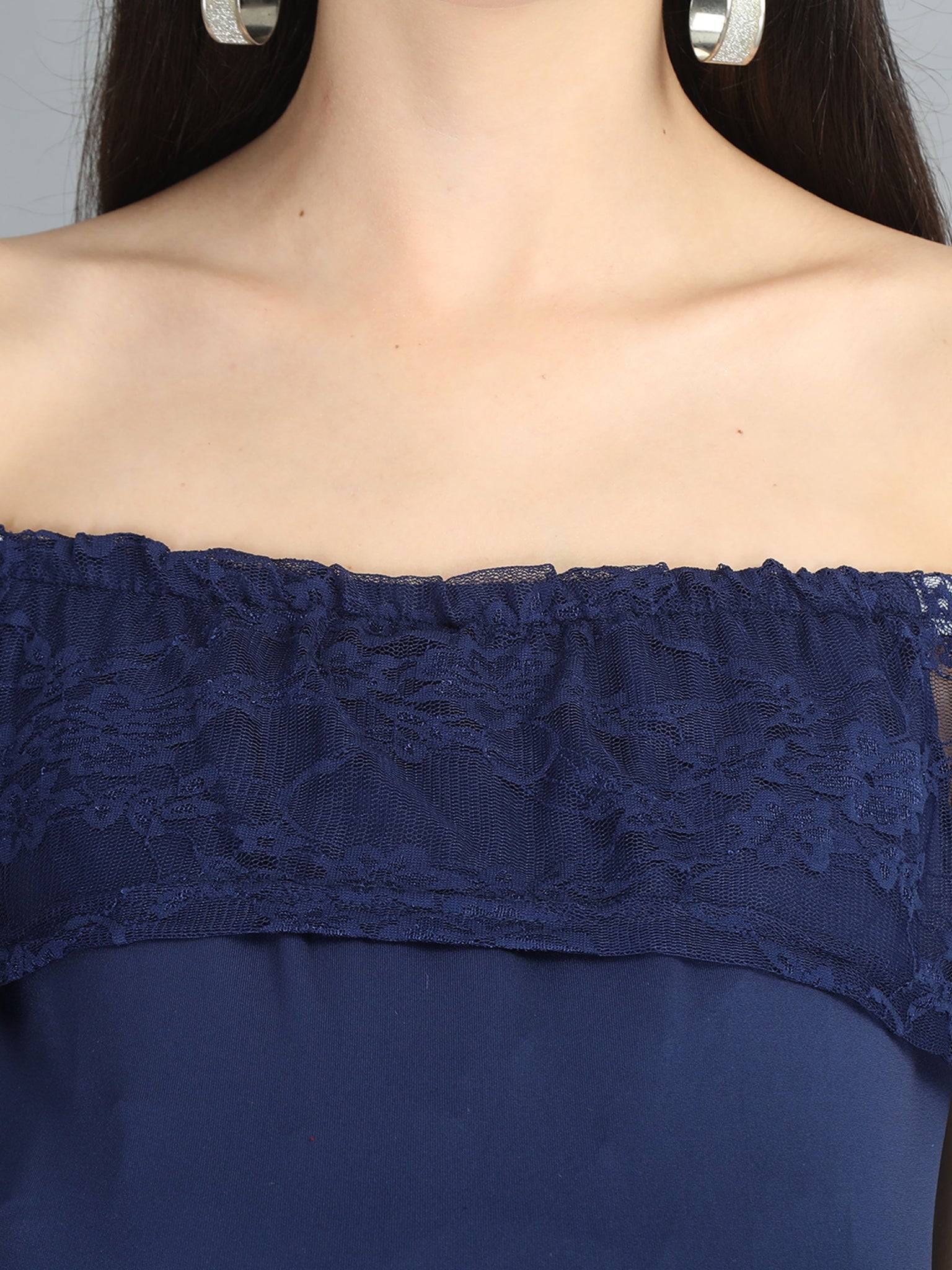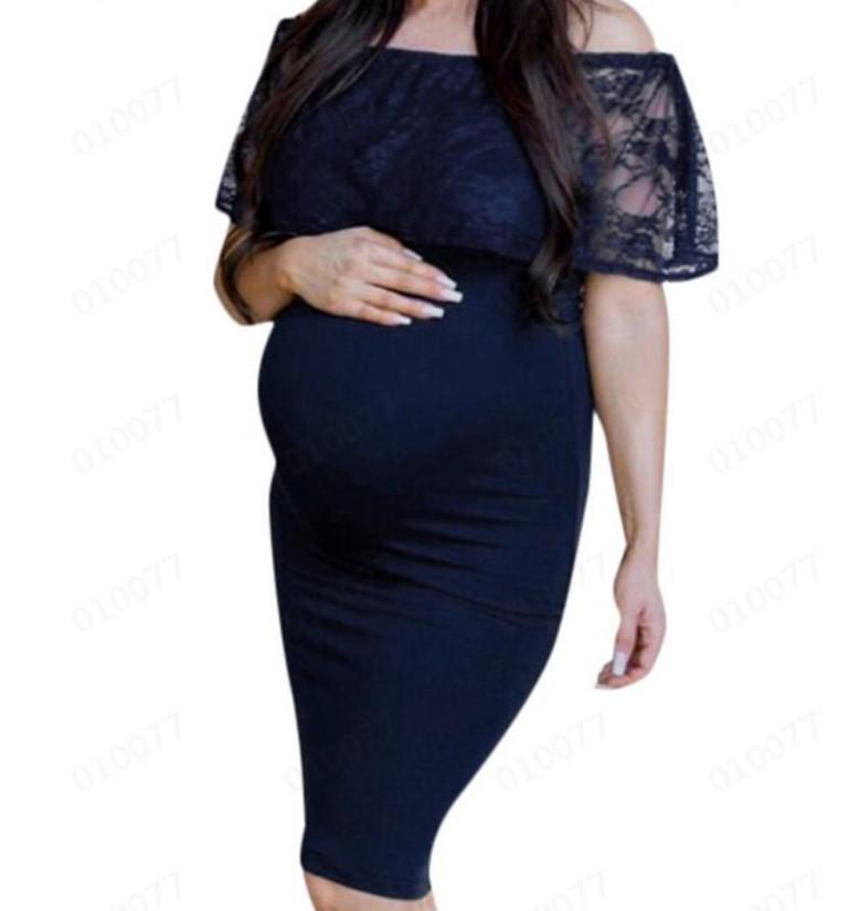 Turn heads with this amazing navy blue lace maternity dress. This knee length dress is perfect for an evening date with your hubby. Wear it for your pregnancy photoshoot and flaunt your growing curves! This dress is made of soft chiffon fabric that accentuates your curves, and makes you look elegant and classy.