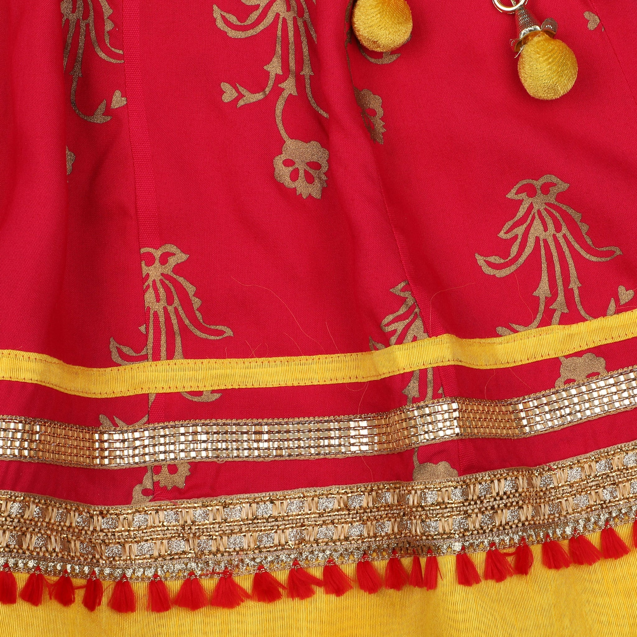 This beautiful pink and yellow girls lehenga choli will brighten up your child's day. It is made of softest, premium material and will be the cutest little outfit for the upcoming festive season!