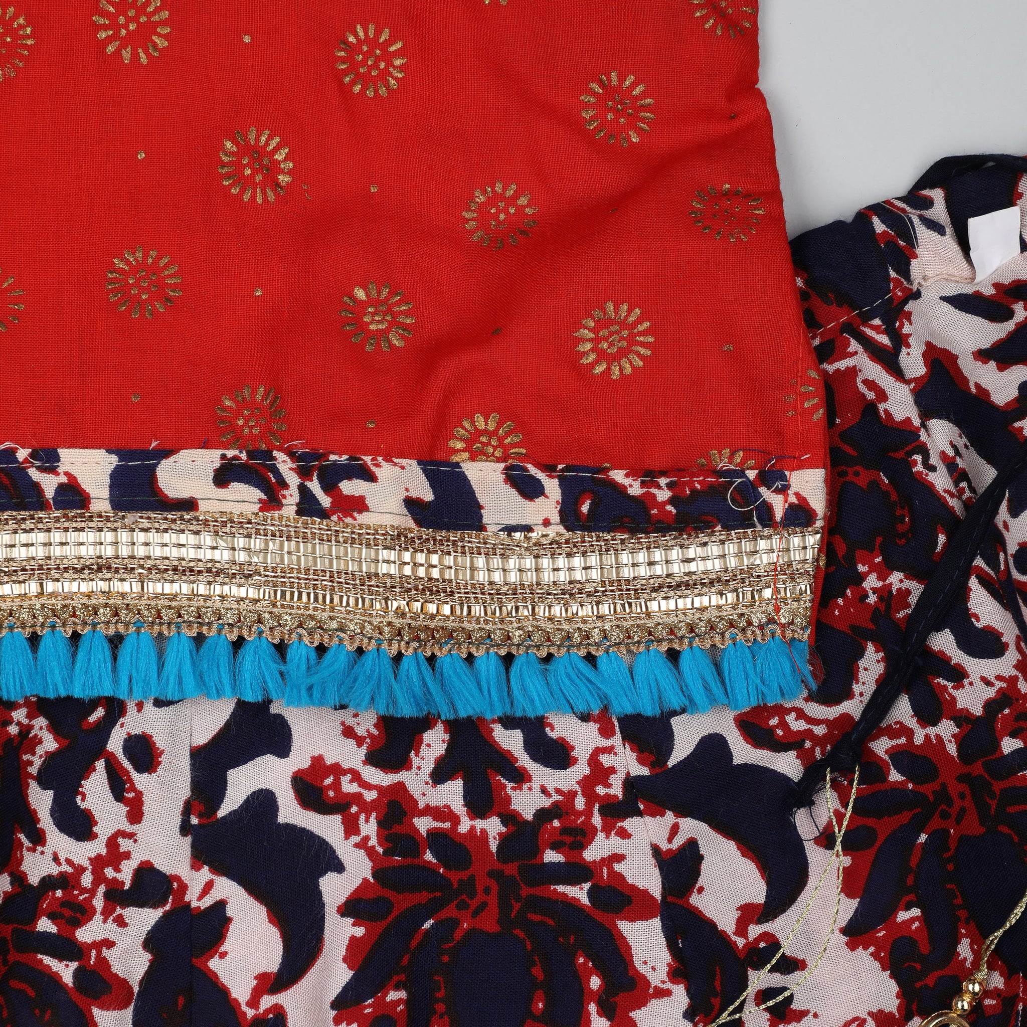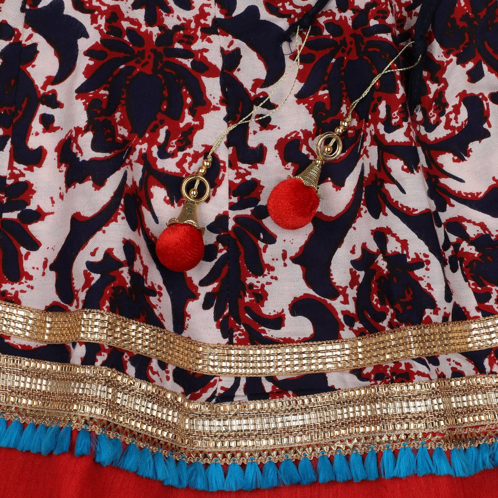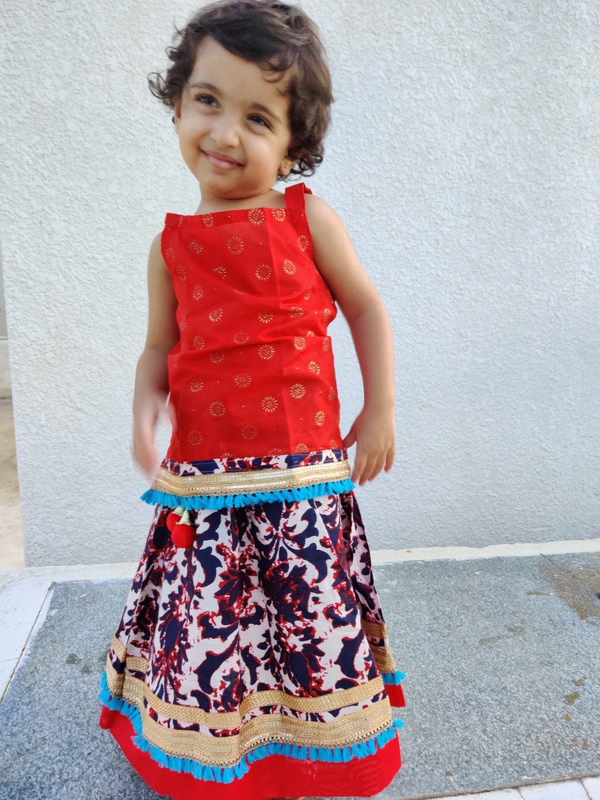 This beautiful red and multi floral girls lehenga choli is made of 100% cotton and will be the cutest little outfit for the upcoming festive season!